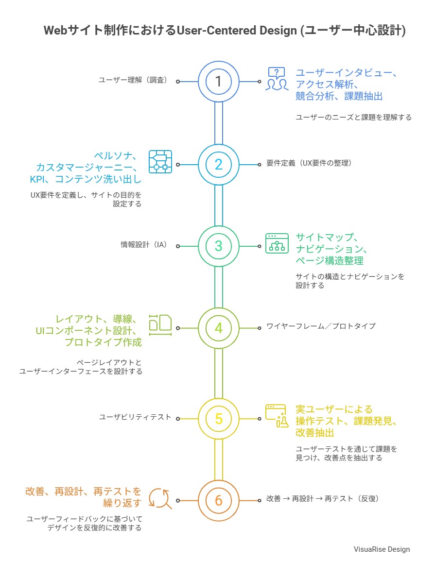 デザインで夢をカタチに! 『VisuaRise Design』という名前には、Visual(視覚) と Rise(上昇・成長) を組み合わせた想いが込められています。 あなたの思い描くビジョンを“見える形”にし、ビジネスの成長につなげるパートナーでありたい。それが VisuaRise Design の名前由来と願いです。 企業理念 多彩なサービス VisuaRise Design では、ビジネスの成長につながる幅広いサービスを展開しています。・ Webサイト制作 ・ ホームページドック (より良いサイトにするための多角的な分析サービス) ・ バナー制作 / LP制作 ・ キャッチコピー作成 など どのサービスも、多くのお客様から高い評価をいただいています。 制作実績 ユーザー中心設計 VisuaRise Designは、ただホームページを作るだけの制作会社ではありません。 市場調査や競合分析、そしてマーケティングの視点を取り入れながら、User-Centered Design(ユーザー中心設計)を行います。製品やサービスを使う“ユーザー”の視点を最優先にして設計するアプローチで、「どうすれば結果につながるのか」 を最後まであきらめずに考え抜く。その姿勢こそが、私たちのデザインを支える原動力です。 制作の流れ ホームページ(以下、HP)制作に、 お悩み ではありませんか?実は、本当に多くの方が同じように悩まれています。 その"お悩み"VisuaRise Designにご相談ください HP制作にお悩みですか? HPがほしいけど、何からはじめたらよいのかわからない 時代に合ったカッコいいデザインにしたい スマホ対応したい 他の制作会社で制作したHPの修正/リニューアルをしてほしい 集客につながらない。アクセス数、問い合わせ数が伸びない 社内にWebデザイン、マーケティングの知識がある人がいない 更新を放置してしまったから、HPがすたれている SEO対策、広告や宣伝方法など、アドバイスがほしい 困ったときに気軽に相談させてほしい ※ 2026年4月現在までに弊社にいただいた、実際のお問い合わせ内容です シンプルに伝えます!ご自身のHPは最低限の考慮ができていますか? HPとはなに?どうして制作するの? HPは価値を伝え、信頼を生み、仕事に繋げる “拠点”! 信頼を得る 仕事・問い合わせを増やす 商品・サービスを売る ブランドイメージを伝える 情報を整理して届ける HPを作る目的は、実は1つに絞る必要はありません。上記が複合的に組み合わさったものに行き着きませんか? 保守は必要? HPは“作って終わり”ではなく、“育てていく資産”! 脆弱性の解消、セキュリティ対策 ビジネスやサービスの今を伝達 SEO基本の検索順位の維持や向上 ブラウザや携帯の仕様変更に追随 機会損失を防ぐ 保守は必要ないという人がある一定数いますが保守は資産価値を守り、伸ばすための大事なメンテナンスです。 カッコいいデザインとは? 「見た目がキレイ」だけでは不十分!ユーザーがストレスなく目的を達成でき、あなたの価値が正しく伝わるサイトが “カッコいい”! 目的が明確で、ユーザーが迷わない デザインが美しく、統一されている 表示速度が速い 文章がわかりやすく、魅力が伝わる アクセスしたユーザーが迷わず目的を達成できる。さらに企業や個人の魅力がしっかり伝わることが真のカッコ良さです。 目的に合わせた投資は必要! 規模 目的・サイトの種類 費用の目安 小 名刺代わり・簡易サイト(3~5ページ) 10万円以下 小 会社案内用コーポレートサイト(3~5ページ) 10~50万円 中 ランディングページ(1ページ) 10~50万円 中 集客用コーポレートサイト(10P前後) 50~150万円 中 採用サイト 20~200万円 大 ECサイト (ネットショップ) 100~500万円以上 Scroll Visuals to Values VisuaRise Design 企業理念 ~ 変わり続ける時代でも、変わらない“原理原則”を大切に! ~ 流行や技術は常に進化します。しかし、どれだけ時代が変わっても、良いホームページづくりには変わらない大切な考え方があります。 それが 『 User-Centered Design 』 です (ユーザー中心設計) User-Centered Design(以下、ユーザー中心設計)は、製品やサービスを使う“ユーザー”の視点を最優先にして設計するアプローチです。単なる「使いやすさ」ではなく、ユーザーの目的・行動・感情・文脈を深く理解し、それに基づいてデザインを行う点が特徴です。 VisuaRise Designは、ただ作るだけではなく、ただ見た目を整えるだけでもなく、 “成果につながる理由のあるデザイン” を一緒につくり上げるデザインパートナーです! ユーザー中心設計の図解を見る >> 事業内容 Webサイト制作、HP制作丁寧なヒアリングをもとに、ビジネスに最適なサイトを戦略的に設計します。貴社の事業や目的を中心に据え、ホームページを訪れるユーザーの視点で制作を行います。 『 貴社の想い 』×『 ユーザーの行動・心理 』この両方を踏まえて制作できることが、他社にはない私たちの強みです。 HPドック、マーケティングHPドックとは、現在お使いのホームページを多角的に分析し、改善点を明確にする診断サービスです。「なぜ成果が出ないのか」「どこを直せば良くなるのか」を、プロの